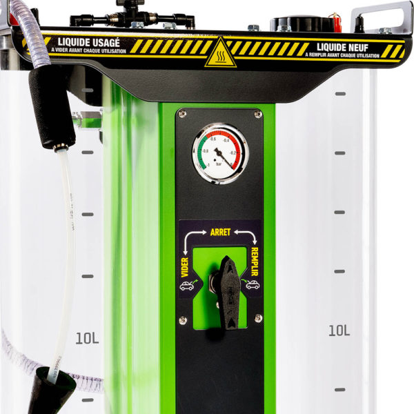 The Flash Cooling® FC 1515 is a pneumatic machine that makes it possible to drain, check the tightness, create a vacuum, fill the cooling circuit and recycle the used liquid in a few minutes.